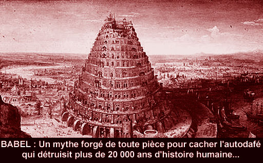 Pour tenter de cacher leur crime, ils imputèrent à Dieu cette destruction du savoir scientifique. Ils travestirent cet autodafé en mythe de la confusion des langues, le mythe de Babel…